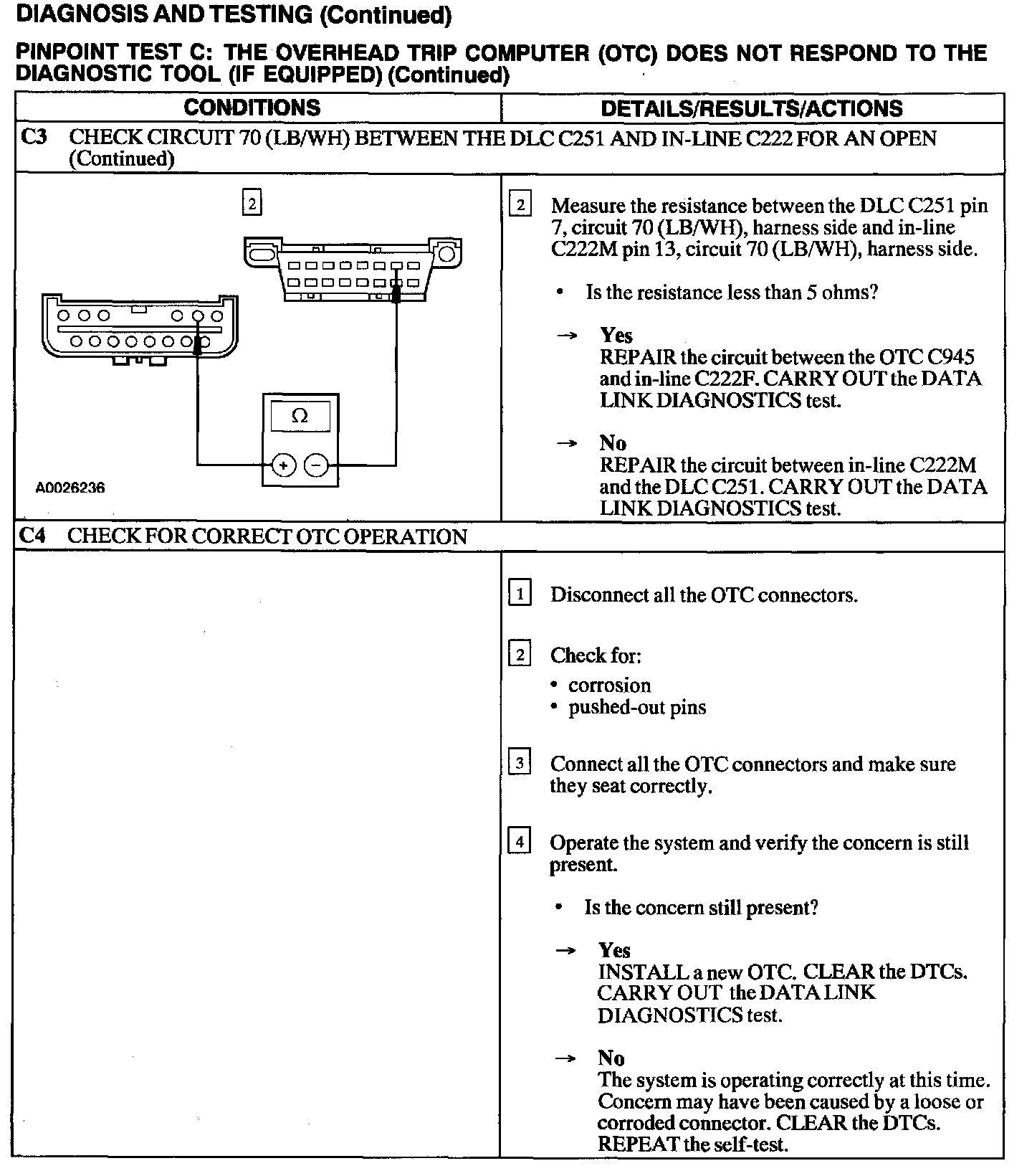 Test C: Overhead Trip Computer Does Not Respond to Diagnostic Tool