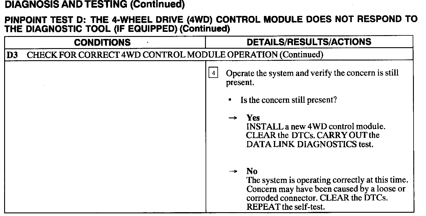 Test D: 4WD Control Module No Response To Diagnostic Tool