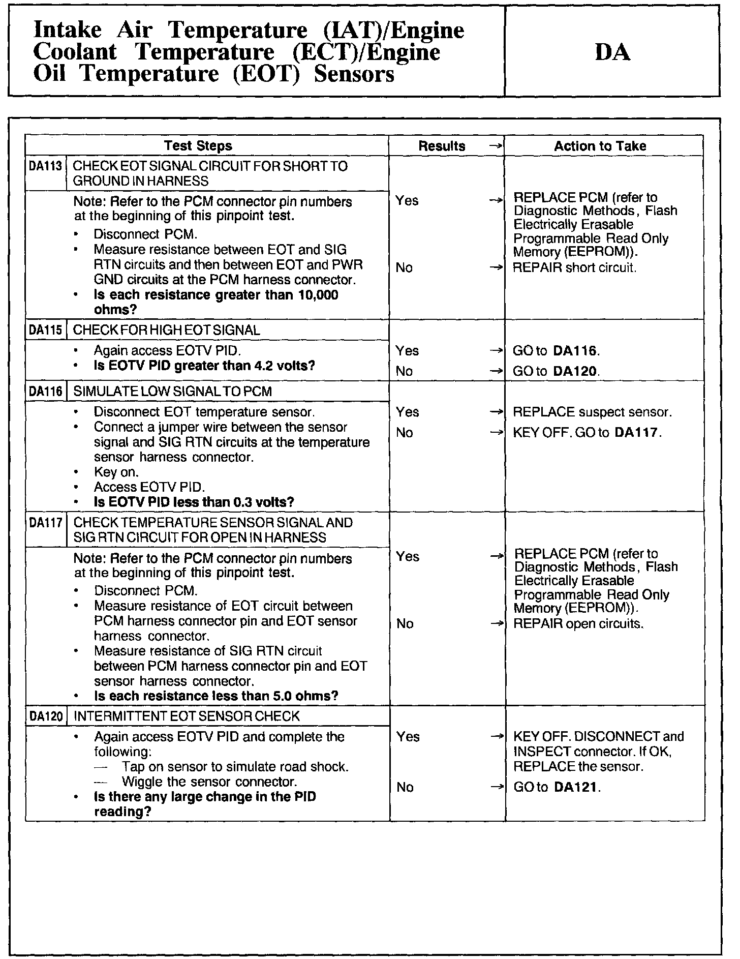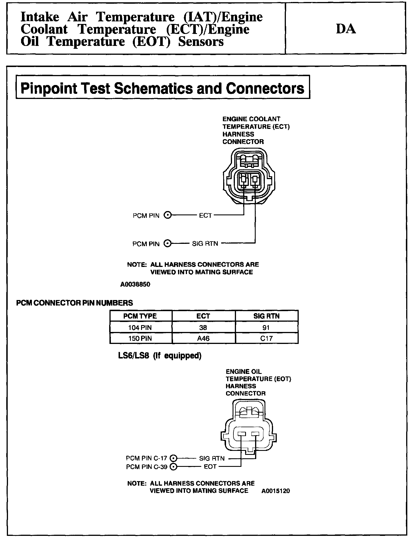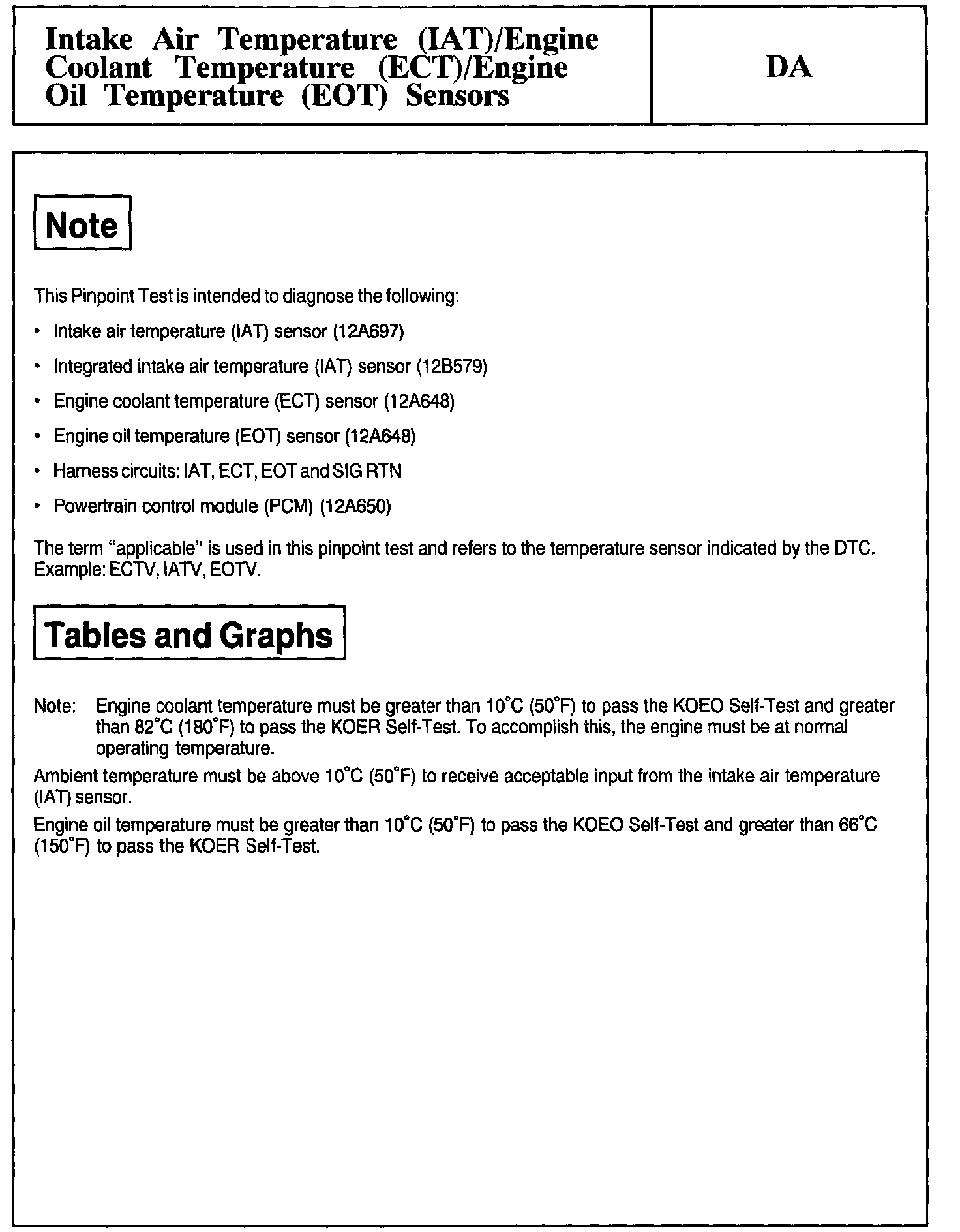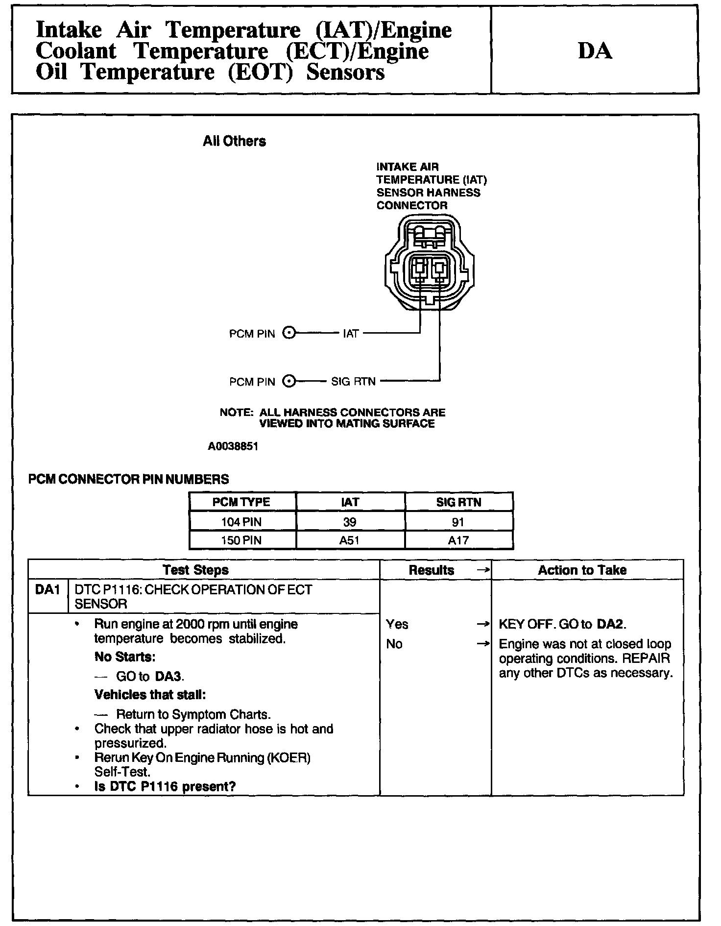 Tests DA: Intake Air Temp. (IAT)/Engine Coolant Temp. (ECT) Sensors