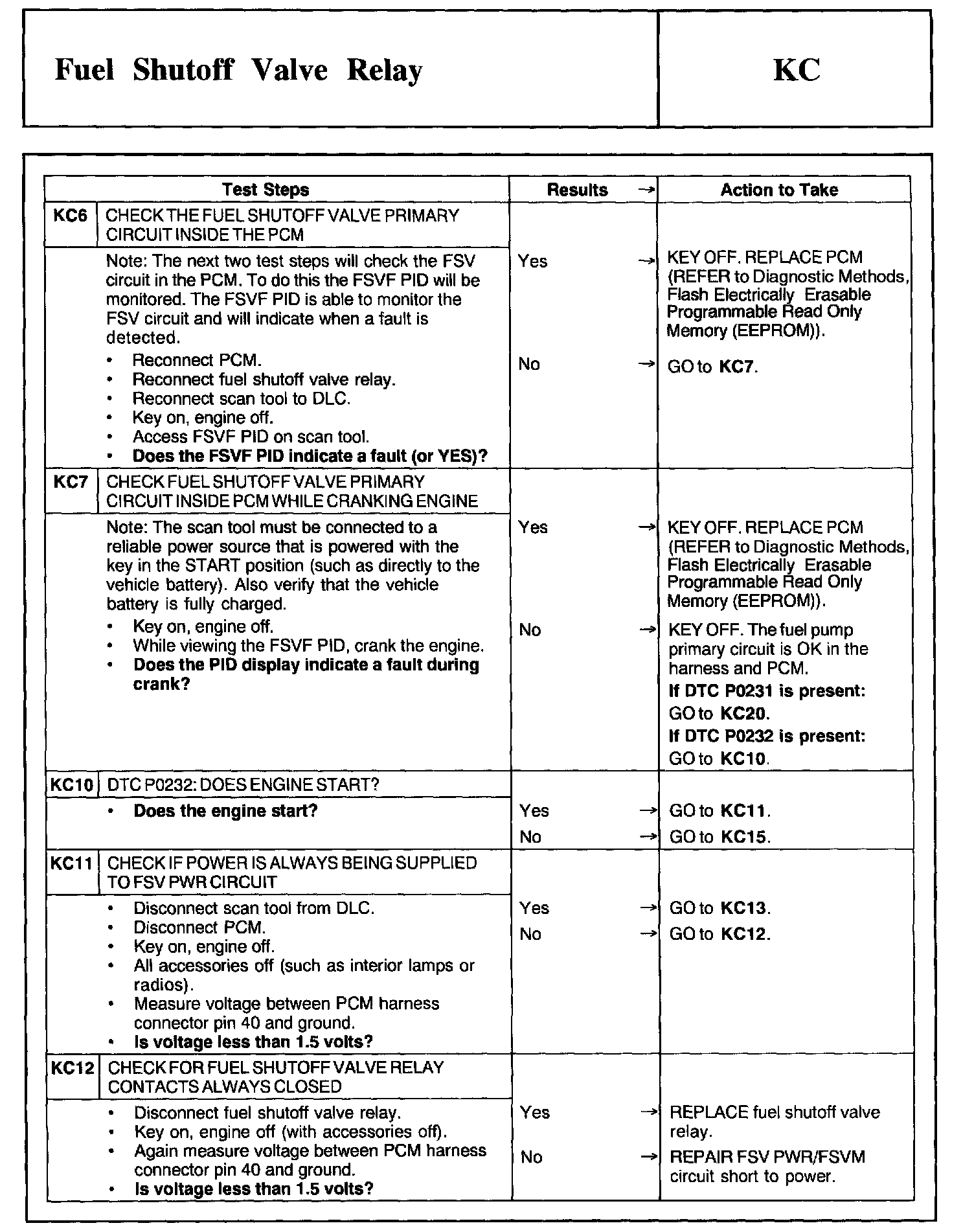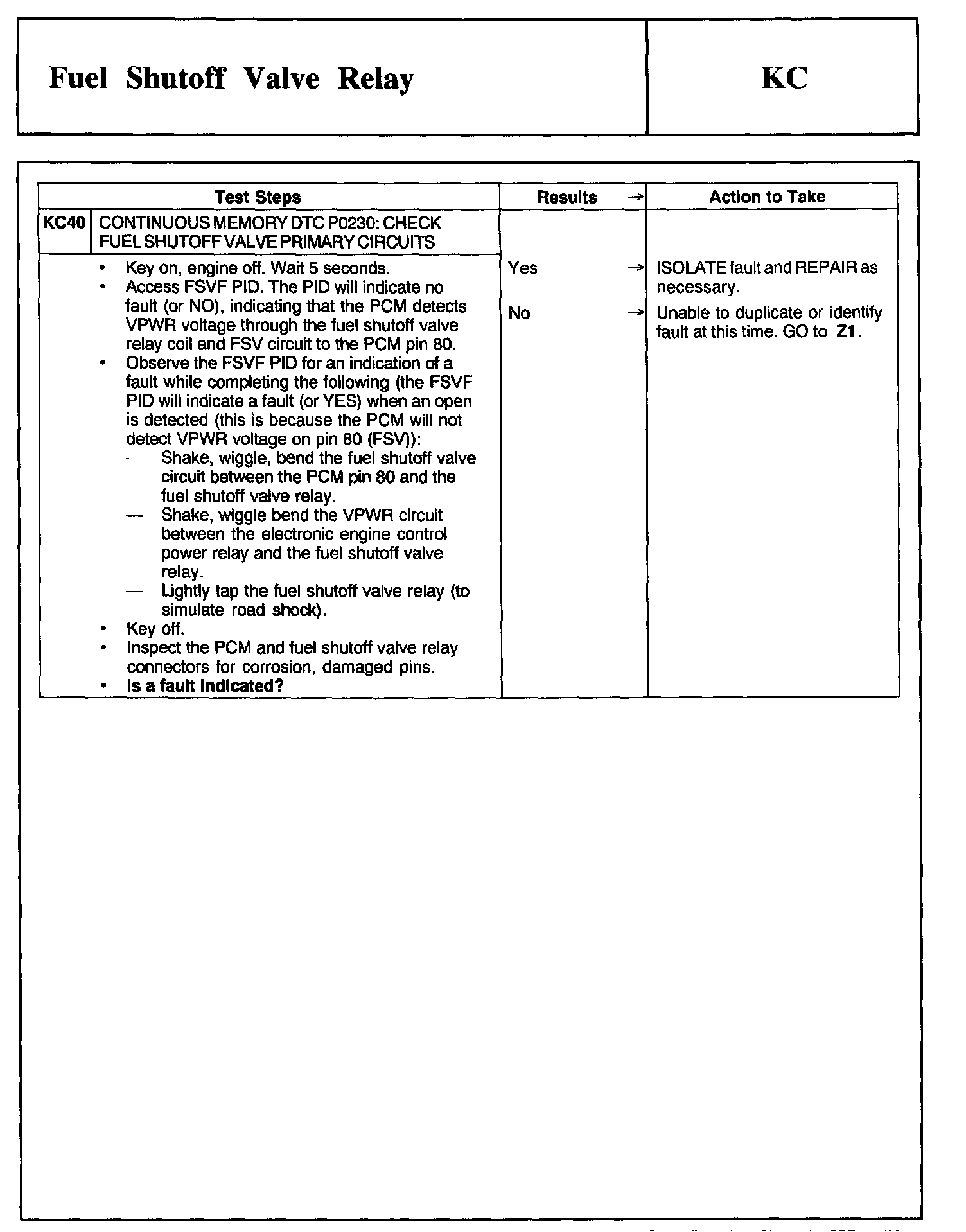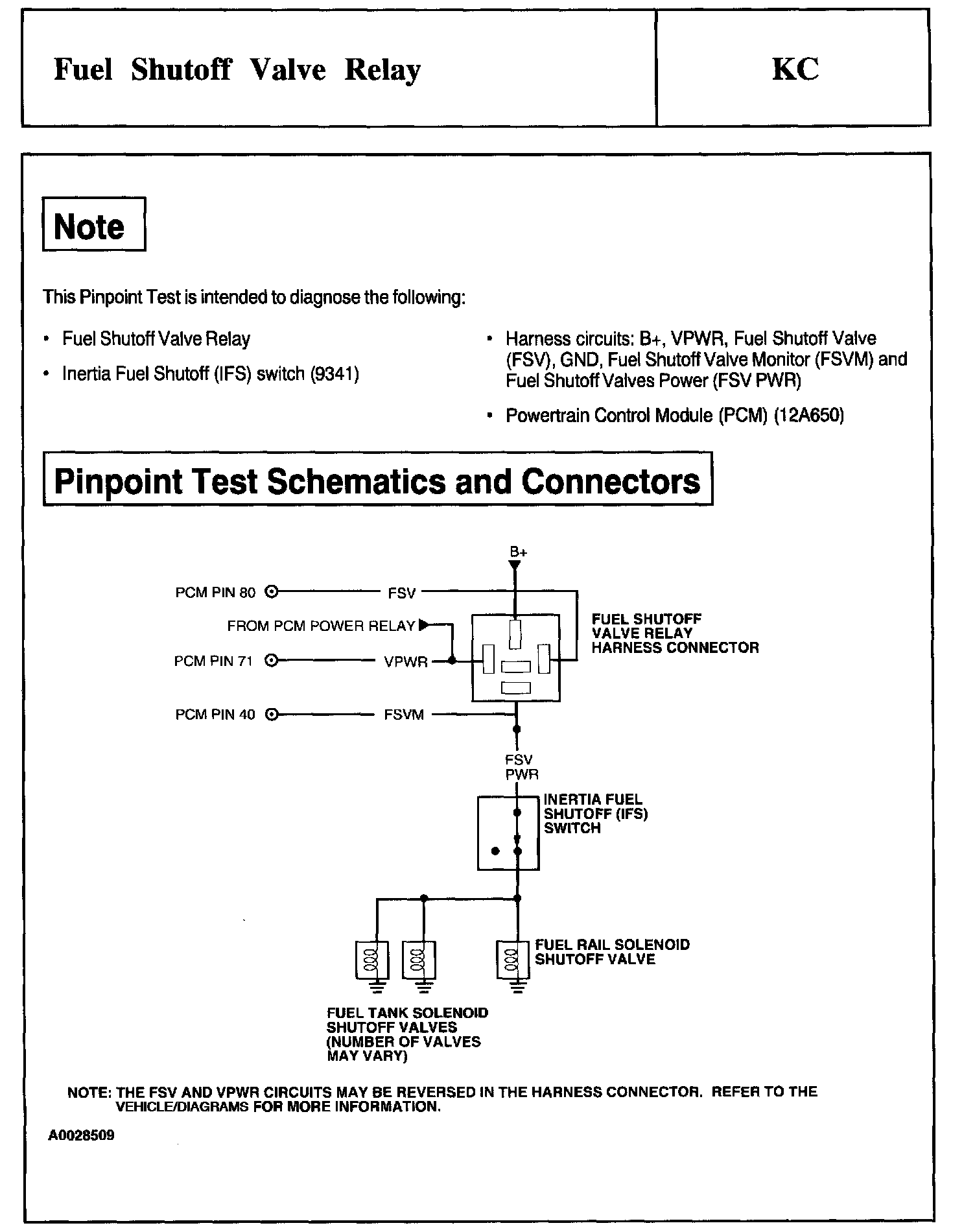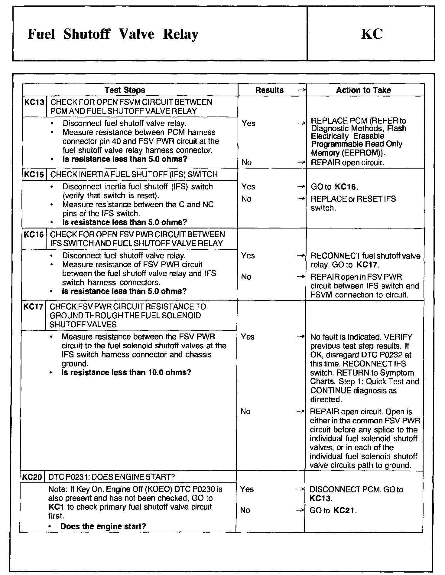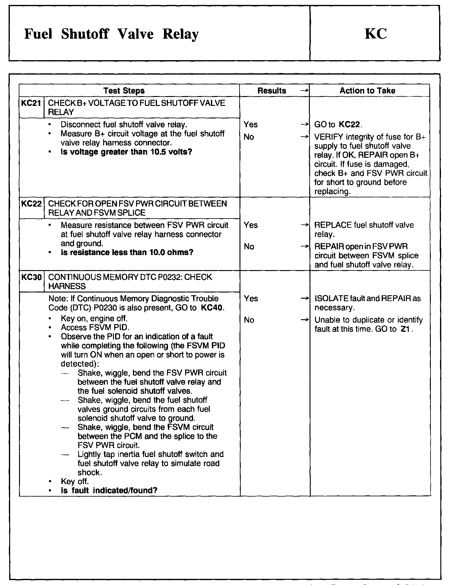 Tests KC: Fuel Shutoff Valve Relay