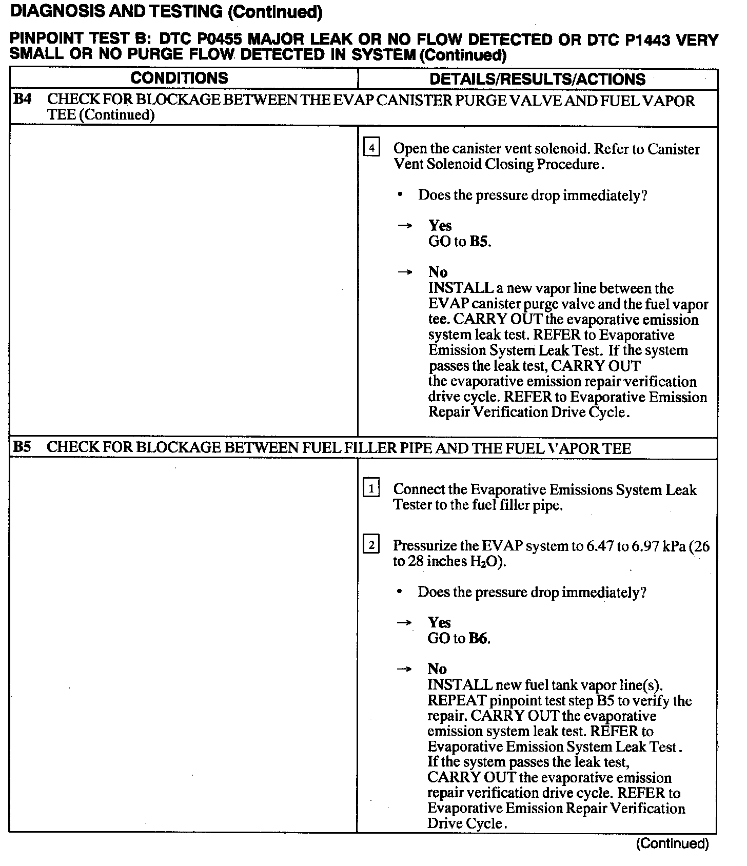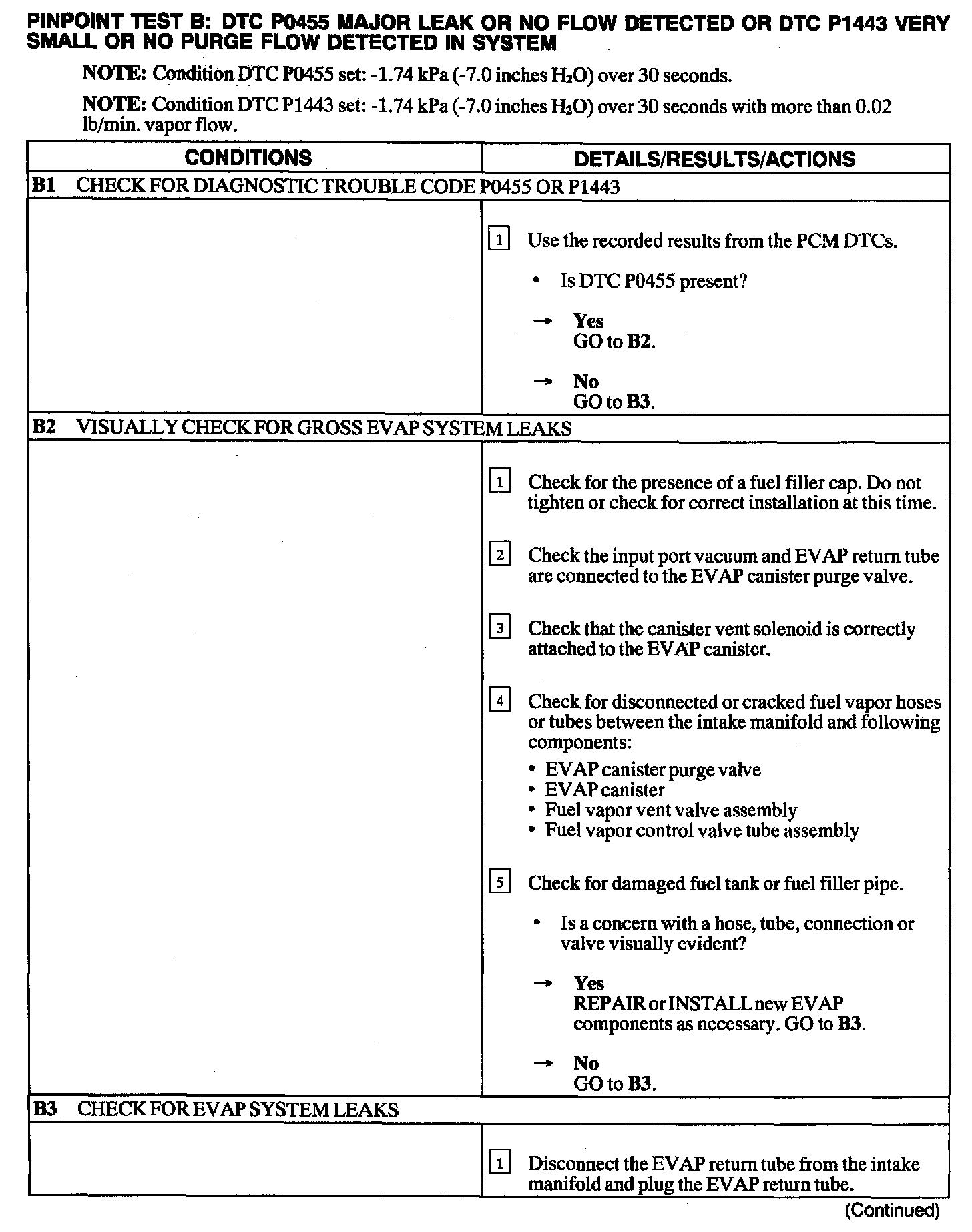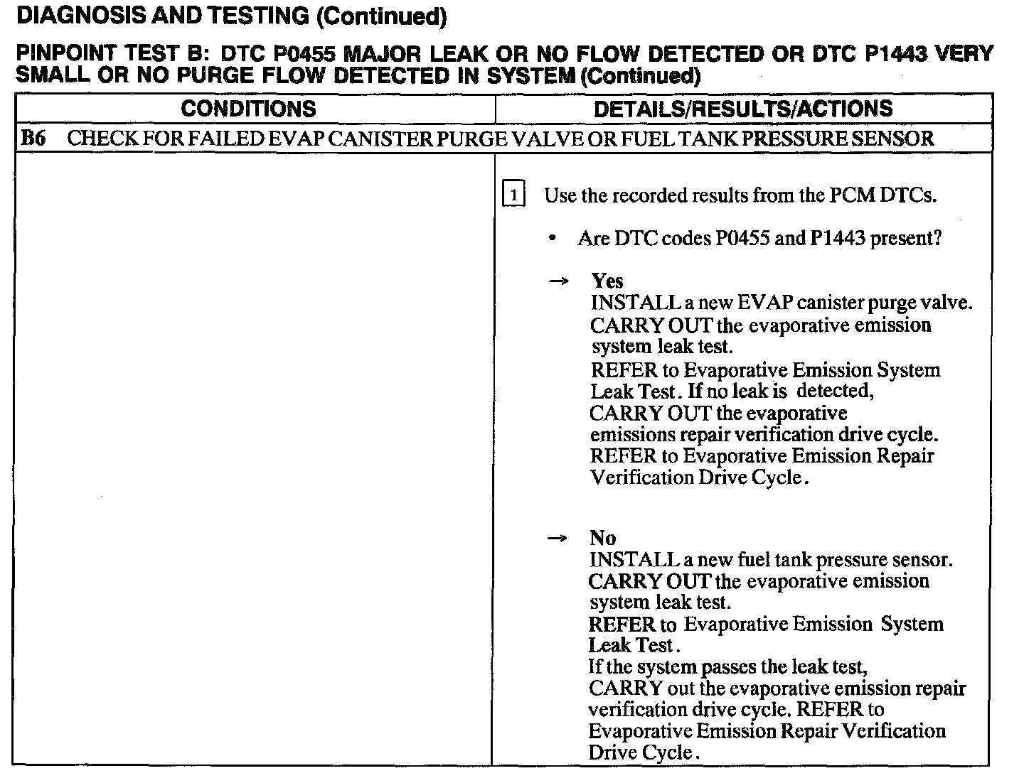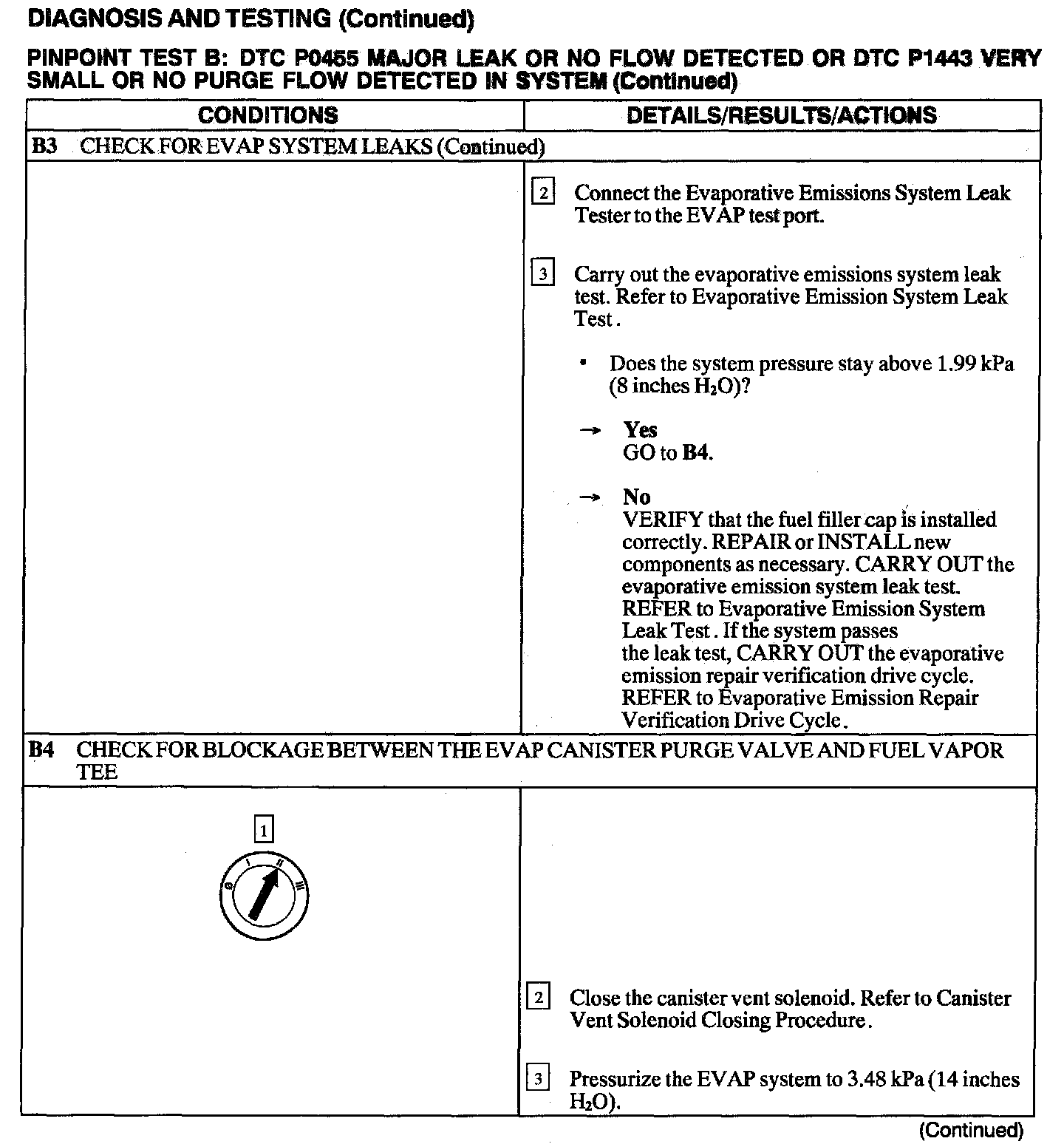 Test B: DTC P0455/P1443 No Flow Detected In System