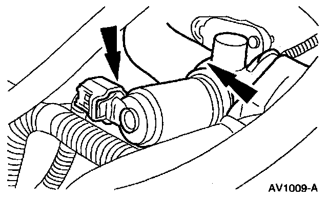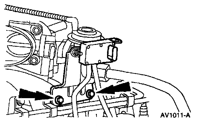 9. Disconnect the hose and electrical connector from the idle air control valve.