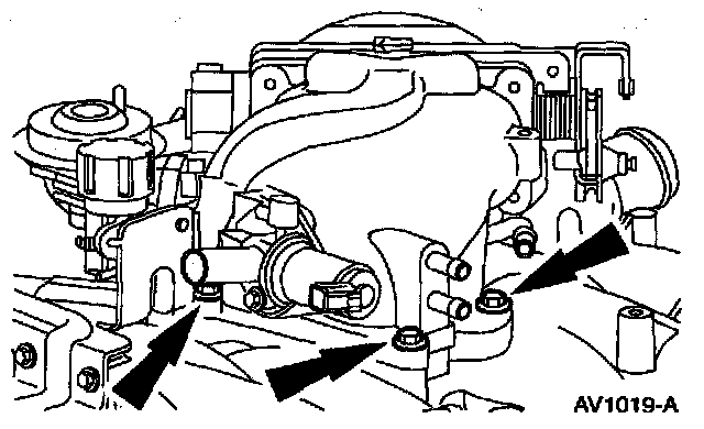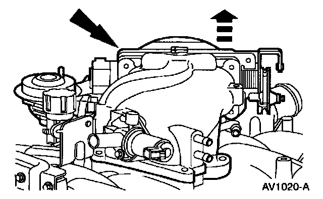 14. Remove the throttle body, throttle body spacer, EGR valve and idle air control valve as an assembly.