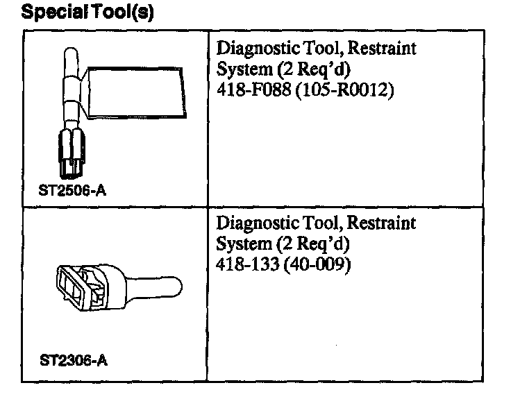 WARNING: THE RESTRAINT SYSTEM DIAGNOSTIC TOOL IS FOR RESTRAINT SYSTEM SERVICE ONLY. REMOVE FROM THE VEHICLE PRIOR TO ROAD USE. FAILURE TO REMOVE COULD RESULT IN INJURY AND POSSIBLE VIOLATION OF VEHICLE SAFETY STANDARDS.