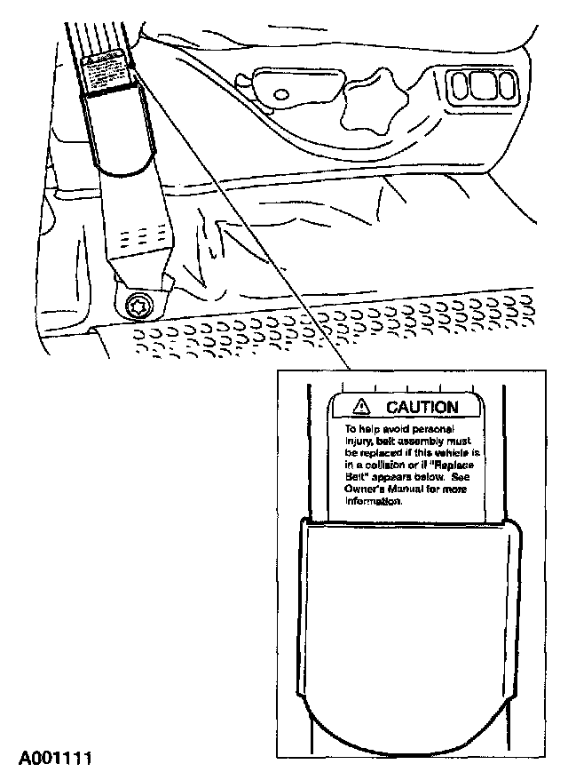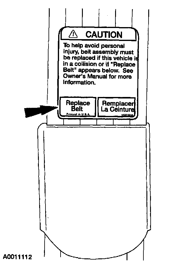 3. If the words Replace Belt are visible, install a new safety belt assembly.