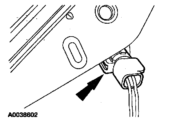 ^ Remove the pin-type retainer from the safety belt warning switch electrical connector.