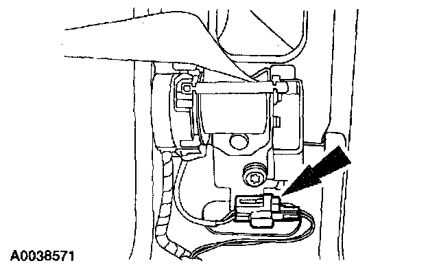 38. Attach the restraint system diagnostic tool to the driver side safety belt retractor pretensioner floor electrical connector.