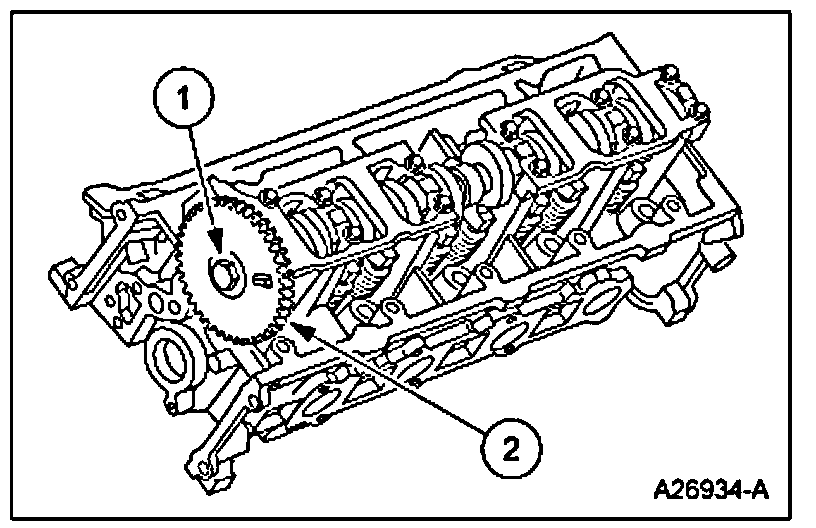 1. On engine equipped with bolt-on sprockets, install the camshaft sprocket (2).