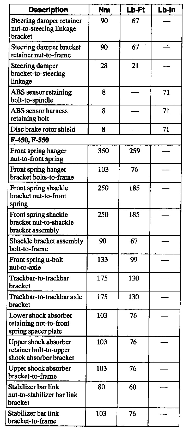 Torque Specifications