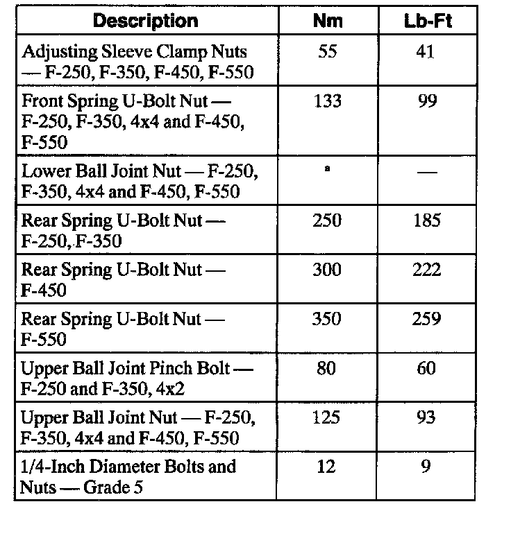 Torque Specifications