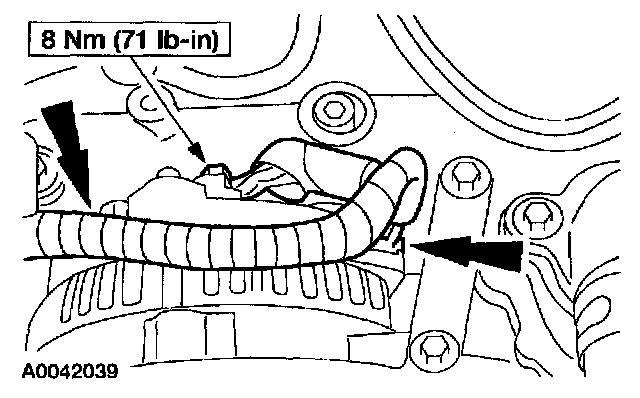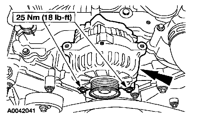 2. Relieve the accessory drive belt tension and remove the belt from the generator pulley. Leave the belt in place for reinstallation.