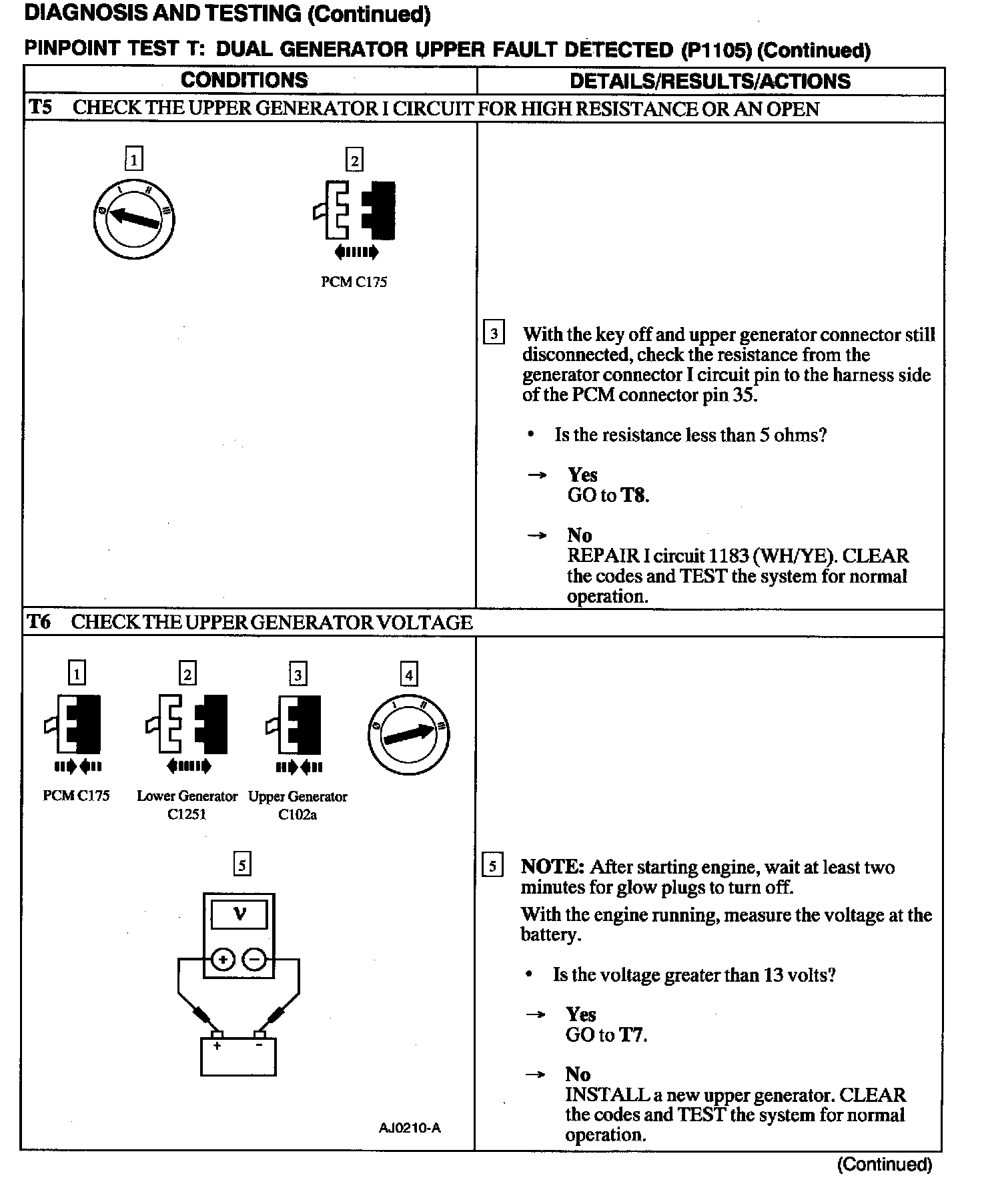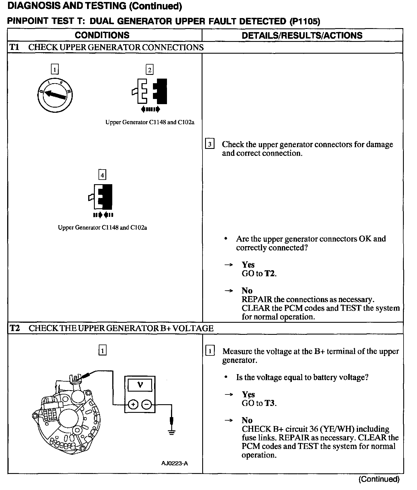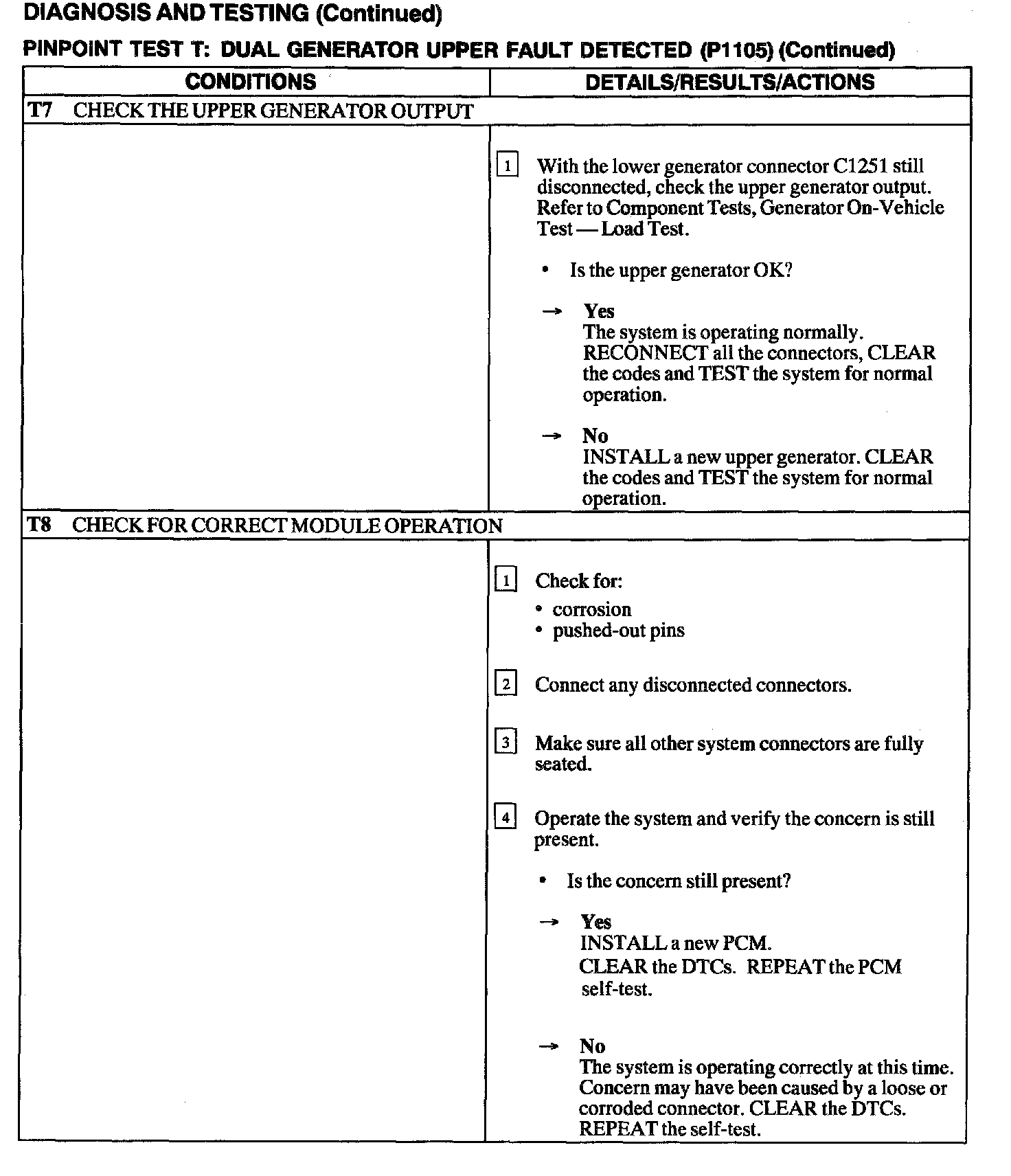 Test T: Dual Generator Upper Fault Detected (P1105)