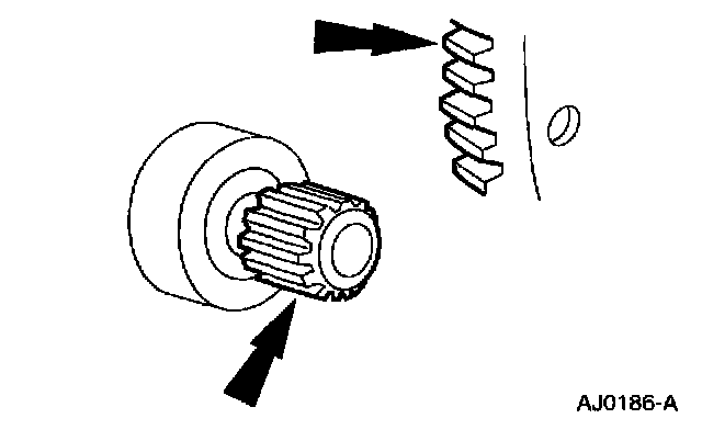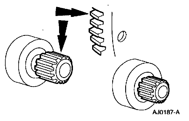 2. Check the wear patterns on the starter drive and the flywheel ring gear. If the wear pattern is normal, install the starter motor.
