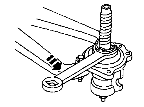 1. Secure the steering gear in a vise with the indexing flat pointed down. Use protective caps on the vise jaws.