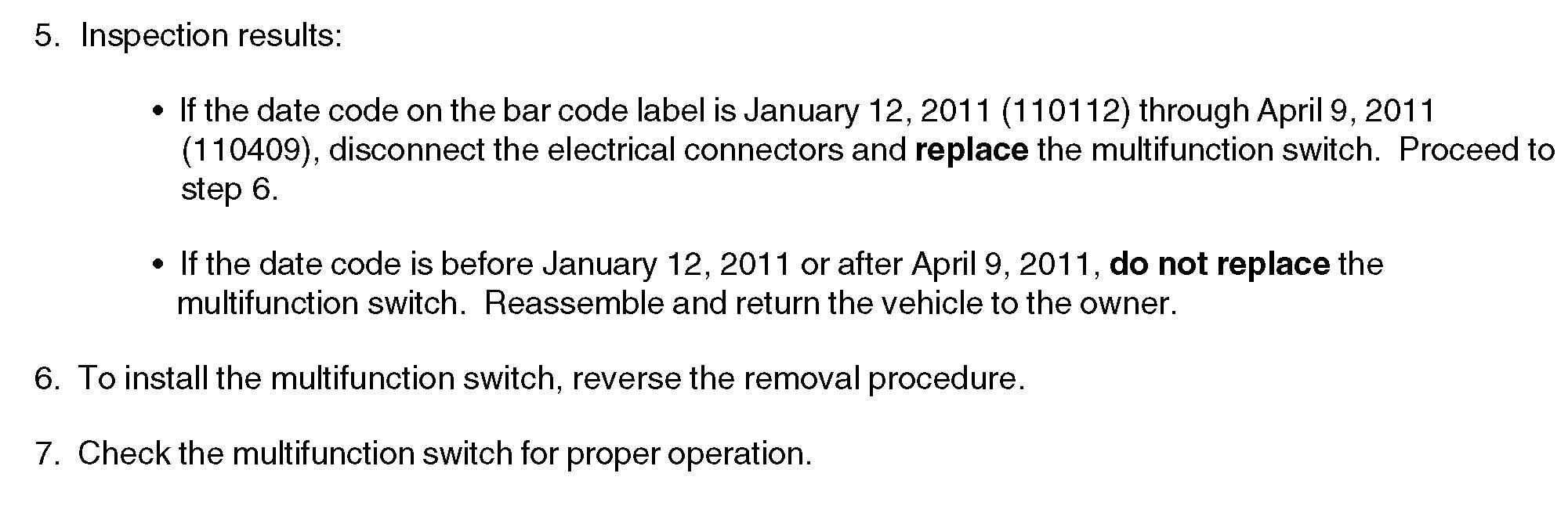 Recall - Multifunction Switch Replacement