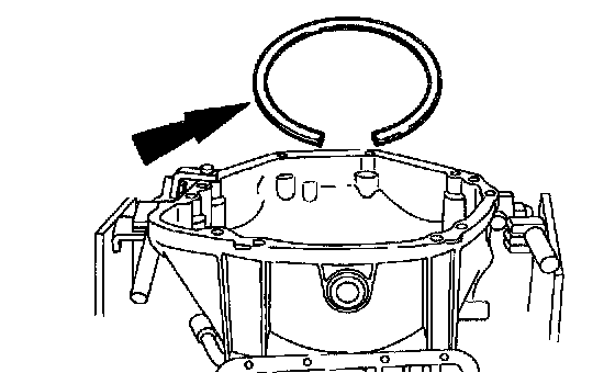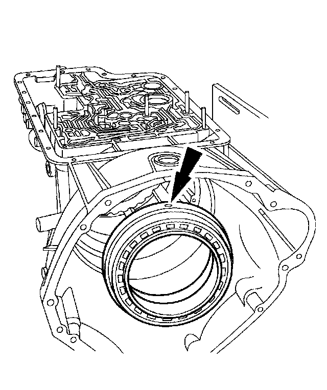 Install the intermediate/overdrive cylinder retaining ring over the intermediate/overdrive cylinder with the ring opening in the 6 o'clock position to allow for the correct fluid drainback.