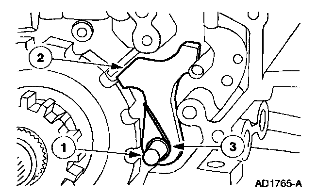 4 NOTE: The manual control valve detent lever spring must be on the inner manual valve detent lever and the detent lever pin must align with the manual shift valve.