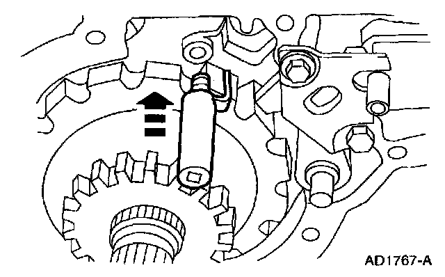 2 Install and seat the manual lever shaft retaining pin below the case surface.