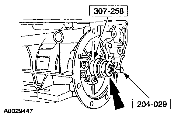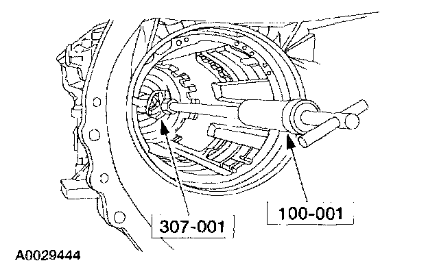4. Hold the special tool while turning the nut until the front case bushing is fully seated. Remove the tools.