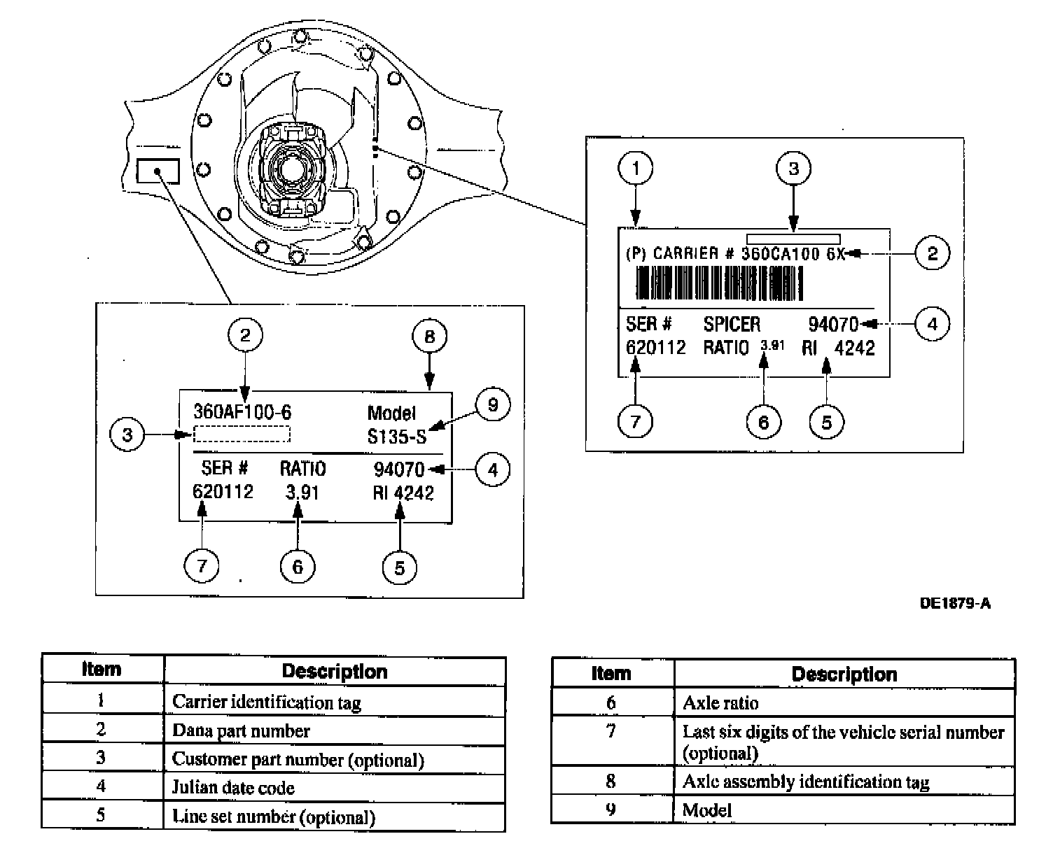 Dana S135 Rear Axle Identification Tag