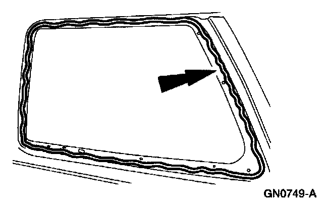 ^ Starting at the bottom middle and working around the frame, apply an 8-mm (0.32-in) bead of foam butyl sealant meeting Ford specification WSB-M2G234-C to the rear quarter window glass frame.