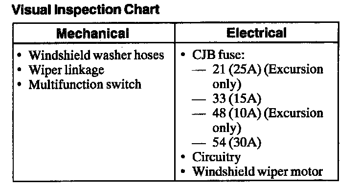3. If an obvious cause for an observed or reported concern is found, correct the cause (if possible) before proceeding to the Symptom Chart. Testing and Inspection