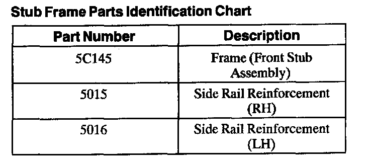 Stub Frame Parts Identification Chart: