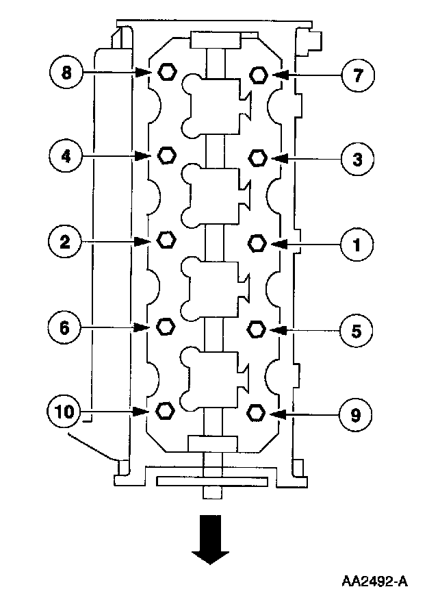 Tighten the LH bolts in the sequence shown.