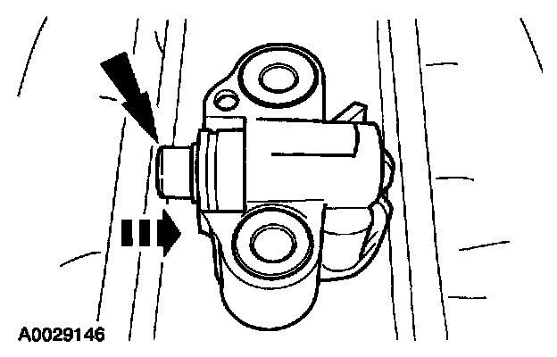 11. Install a retaining clip on the tensioner to hold the plunger in during installation.