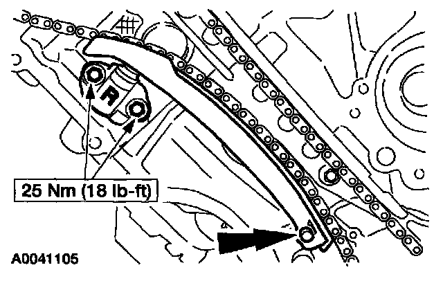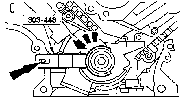 24. NOTE: The lower half of the timing chain must be positioned above the tensioner arm dowel.