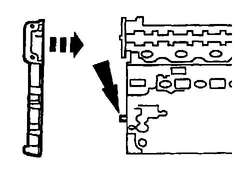 21. NOTE: The LH timing chain tensioner arm has a bump near the dowel hole for identification.