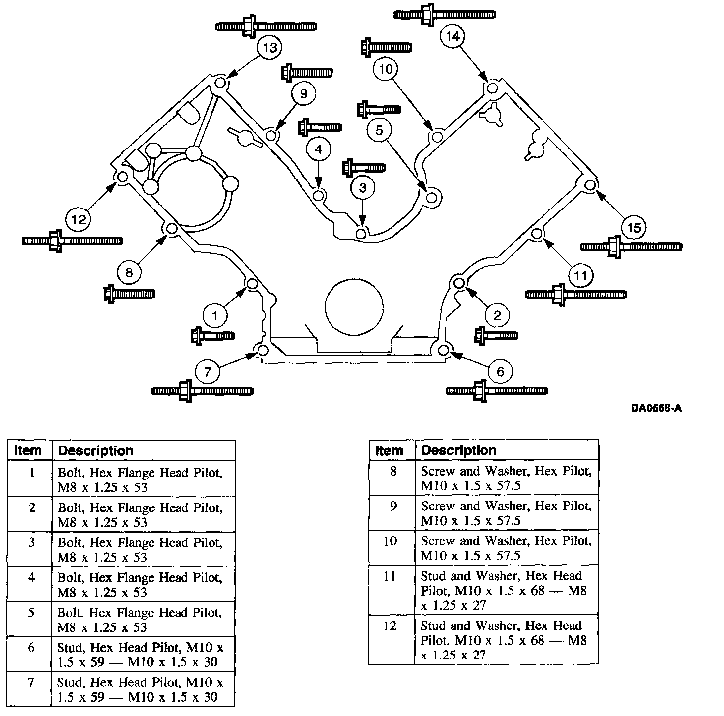 Tighten the RH bolts in the sequence shown.
