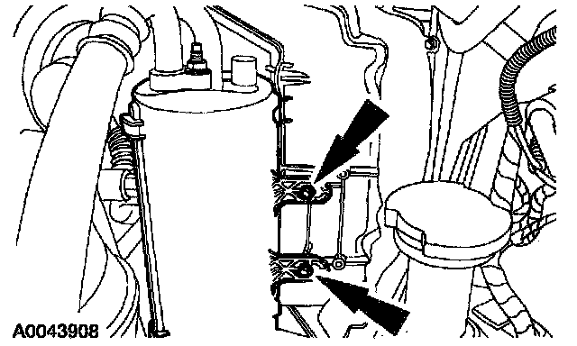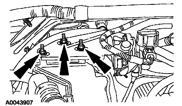 3. Remove the nuts. Secure the evaporative emission canister purge valve, bracket and heater water hose out of the way.