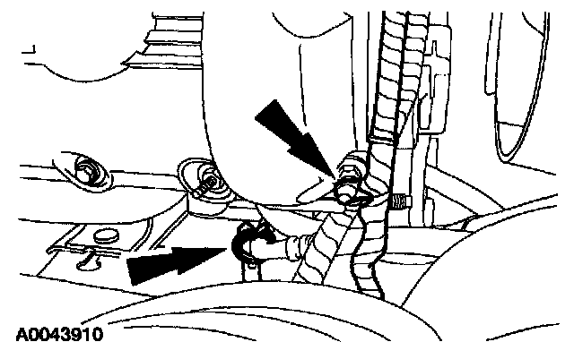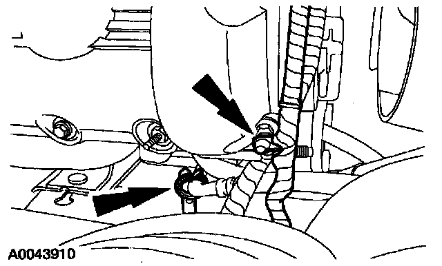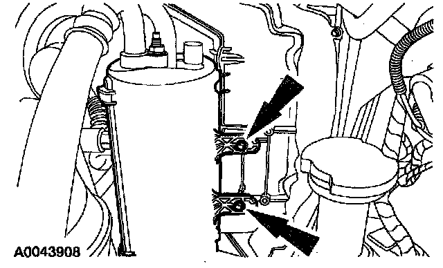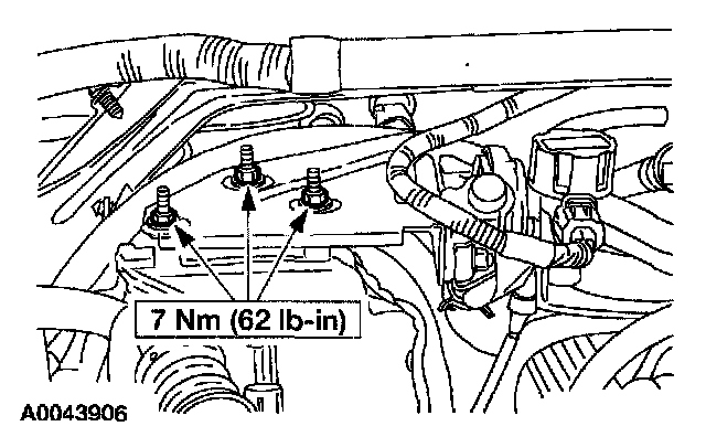 11. Position the heater water hose, evaporative emission canister purge valve and bracket, and install the nuts.