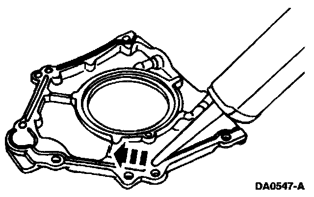 Apply silicone gasket and sealant at the rear oil seal retainer-to-cylinder block sealing surface.