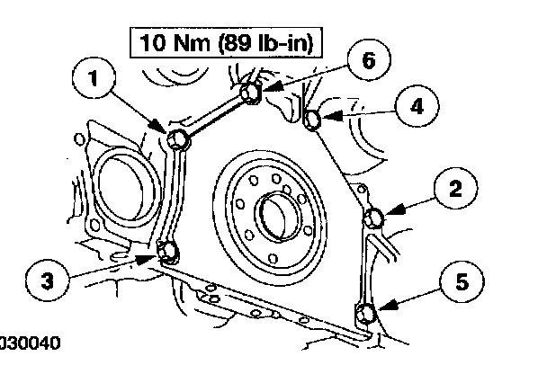 50. Tighten the engine front cover fasteners in , sequence in three stages.