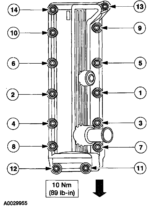 Stage 3: Tighten fasteners 8 through 15 to 48 Nm (35 ft. lbs.).