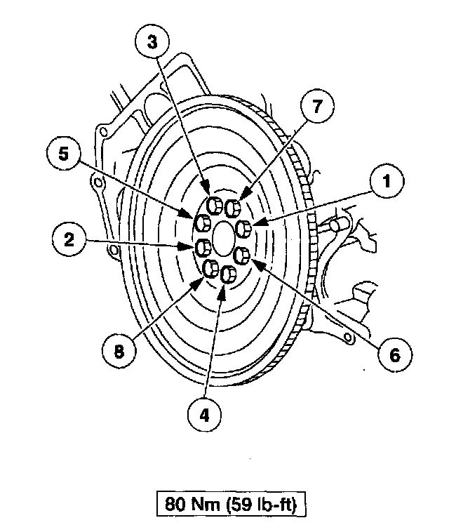 93. Install the flexplate and bolts. Tighten the bolts in the sequence shown.