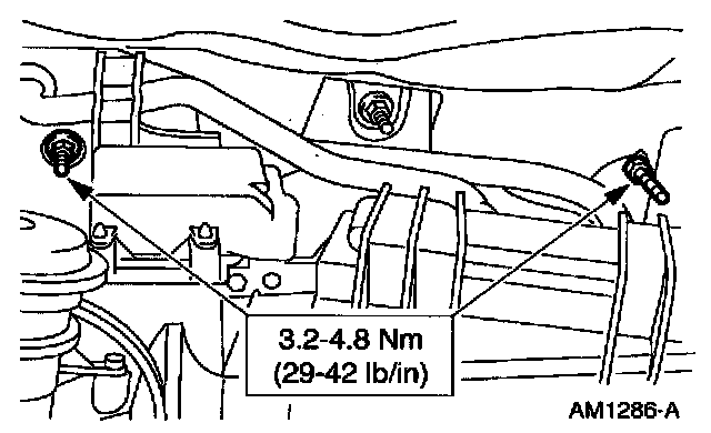 9. Tighten the evaporator core housing support bracket screws.
