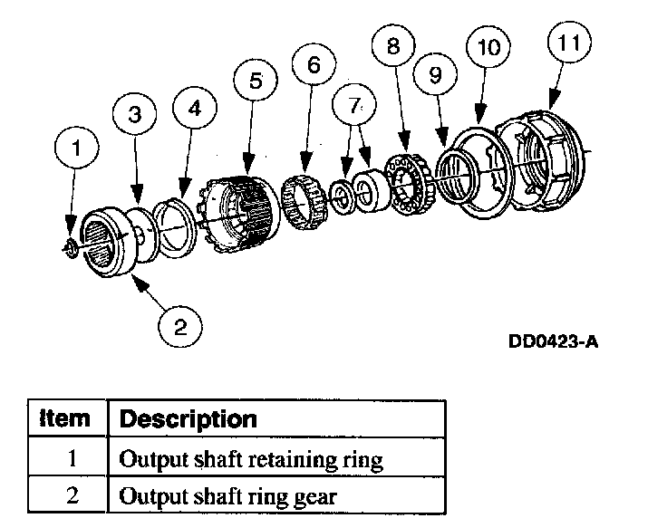 1. Remove the output shaft ring gear and the No. 12 thrust bearing.