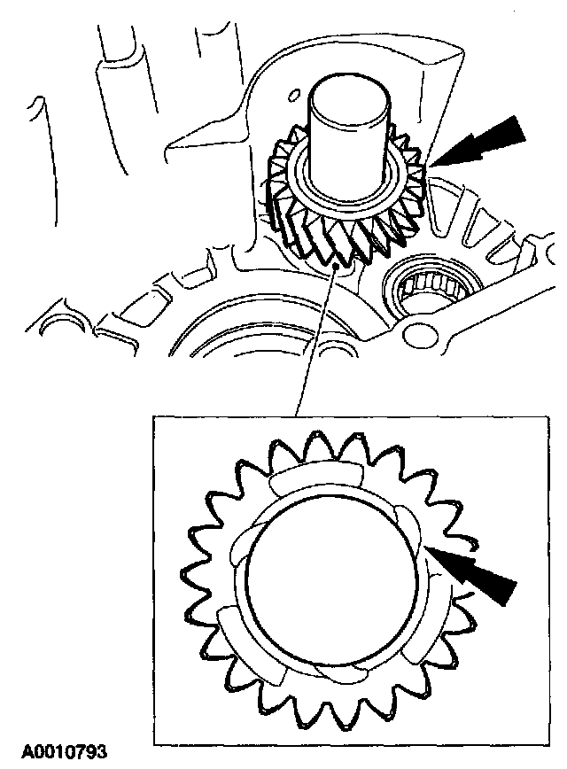 Install the reverse idler shaft, reverse idler gear bearings and reverse idler gear.