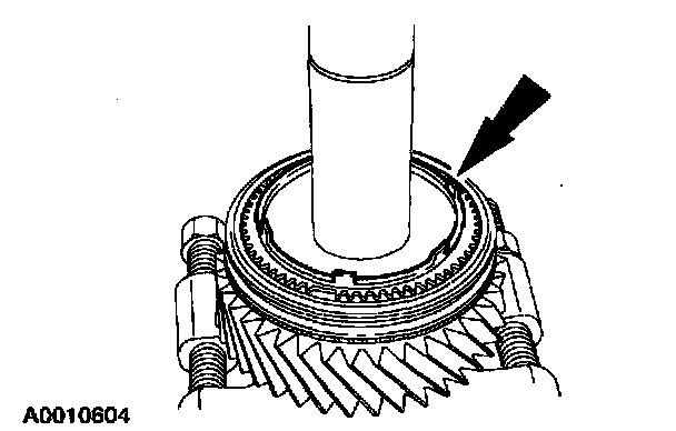 23. Install the synchronizer ring, then move the synchronizer sliding sleeve up on the synchronizer body.