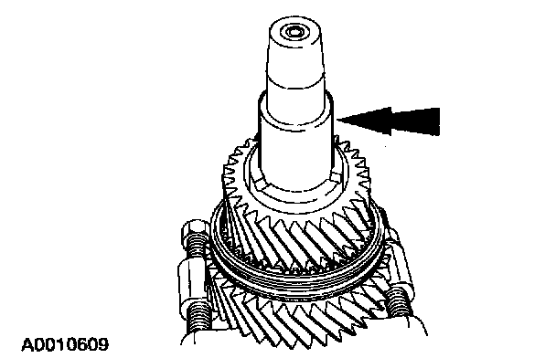 4. Using the special tool, position the mainshaft on the press with the input end facing upward.