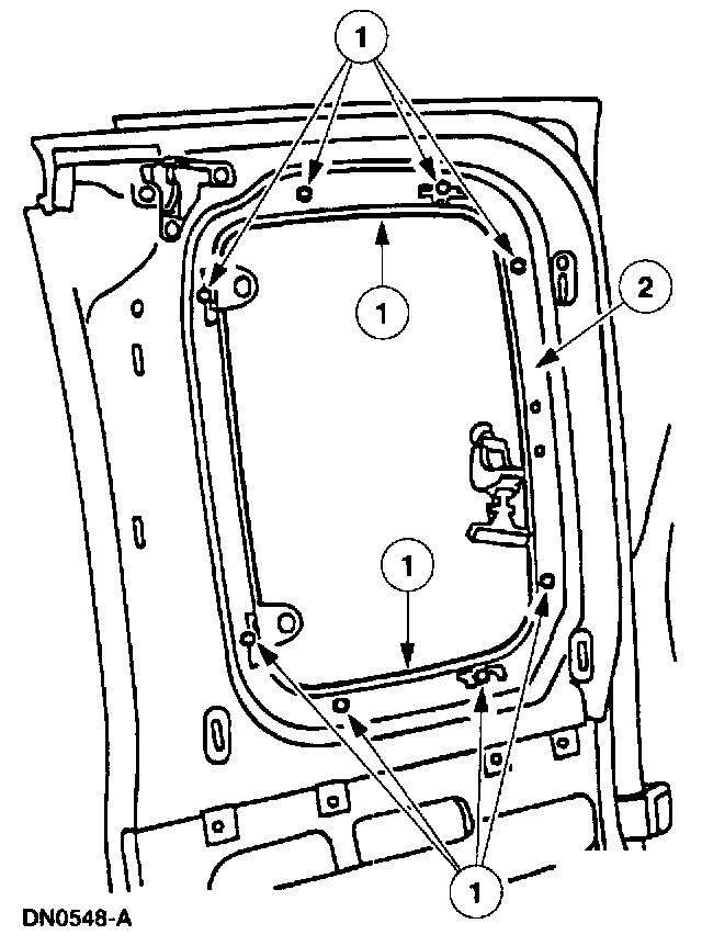 2 Remove the rear door window glass and frame.