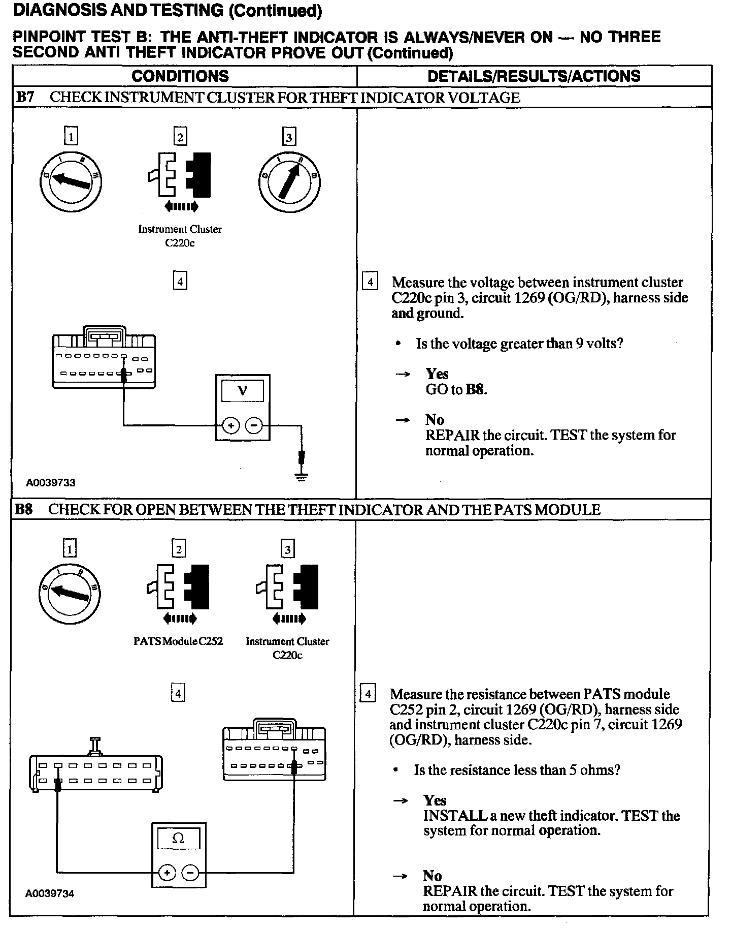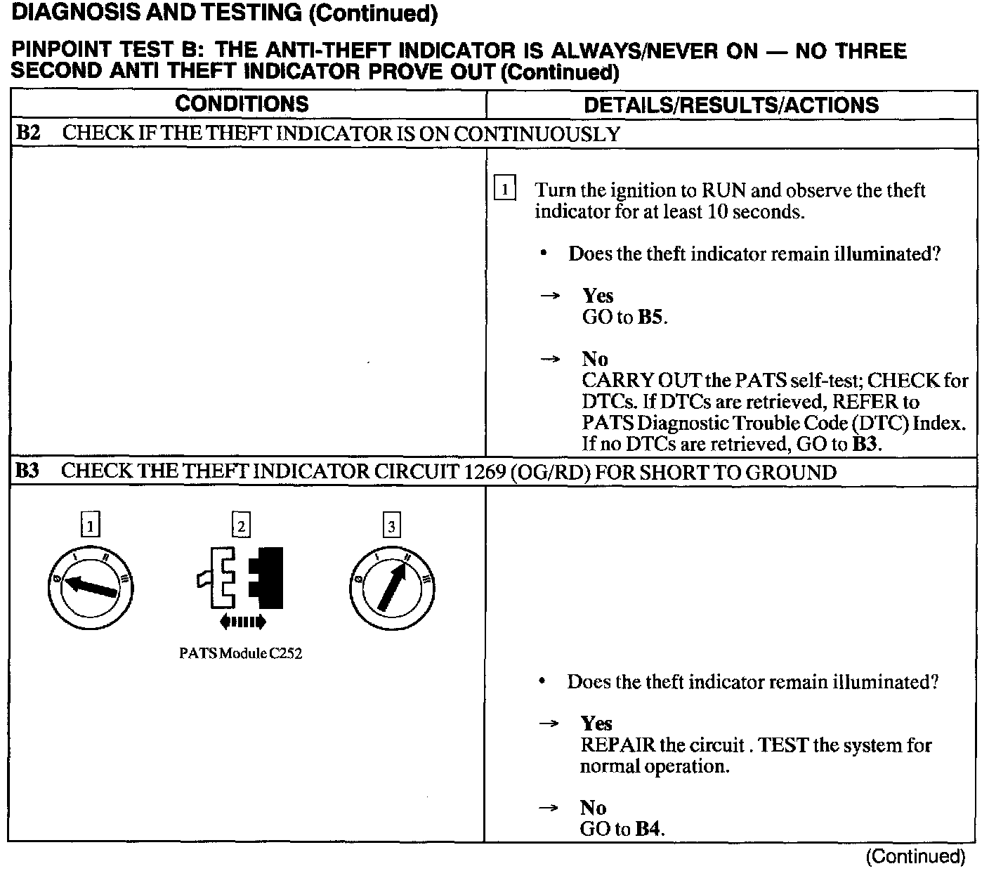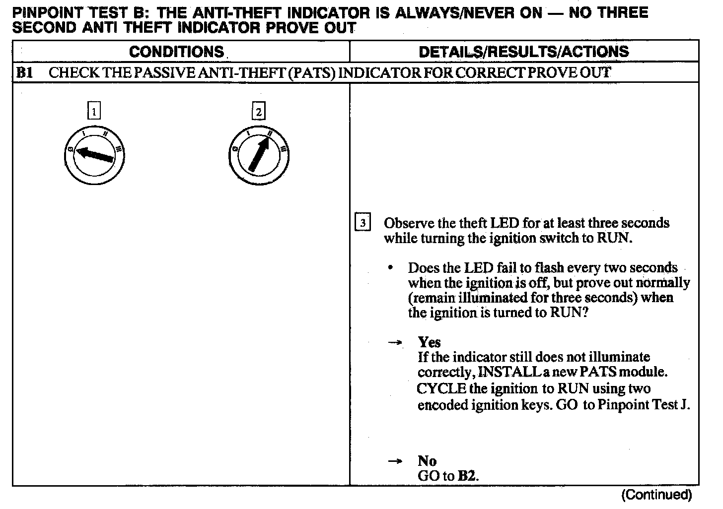 B: Anti-theft Indicator Is Always/Never On - No Three Second Anti Theft Indicator Prove Out
