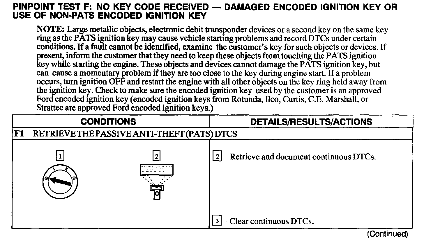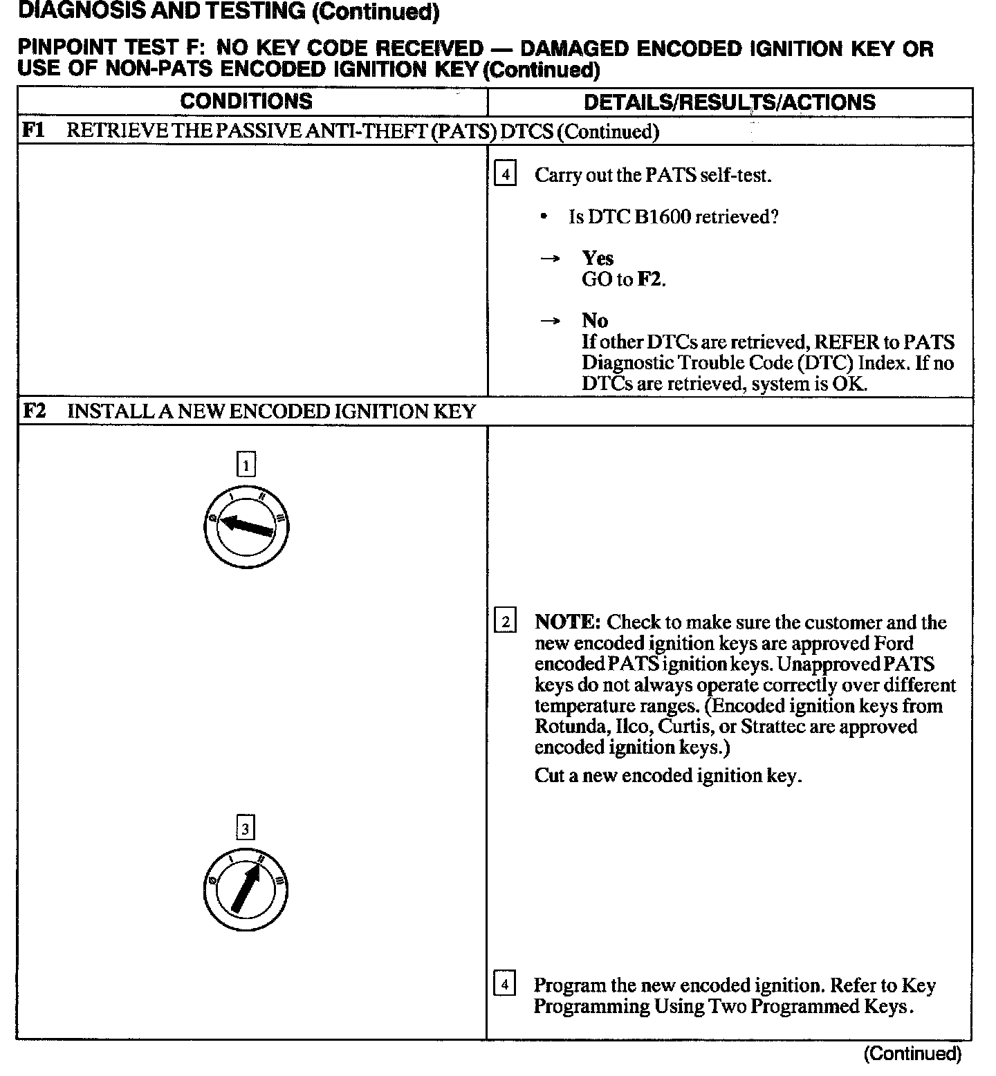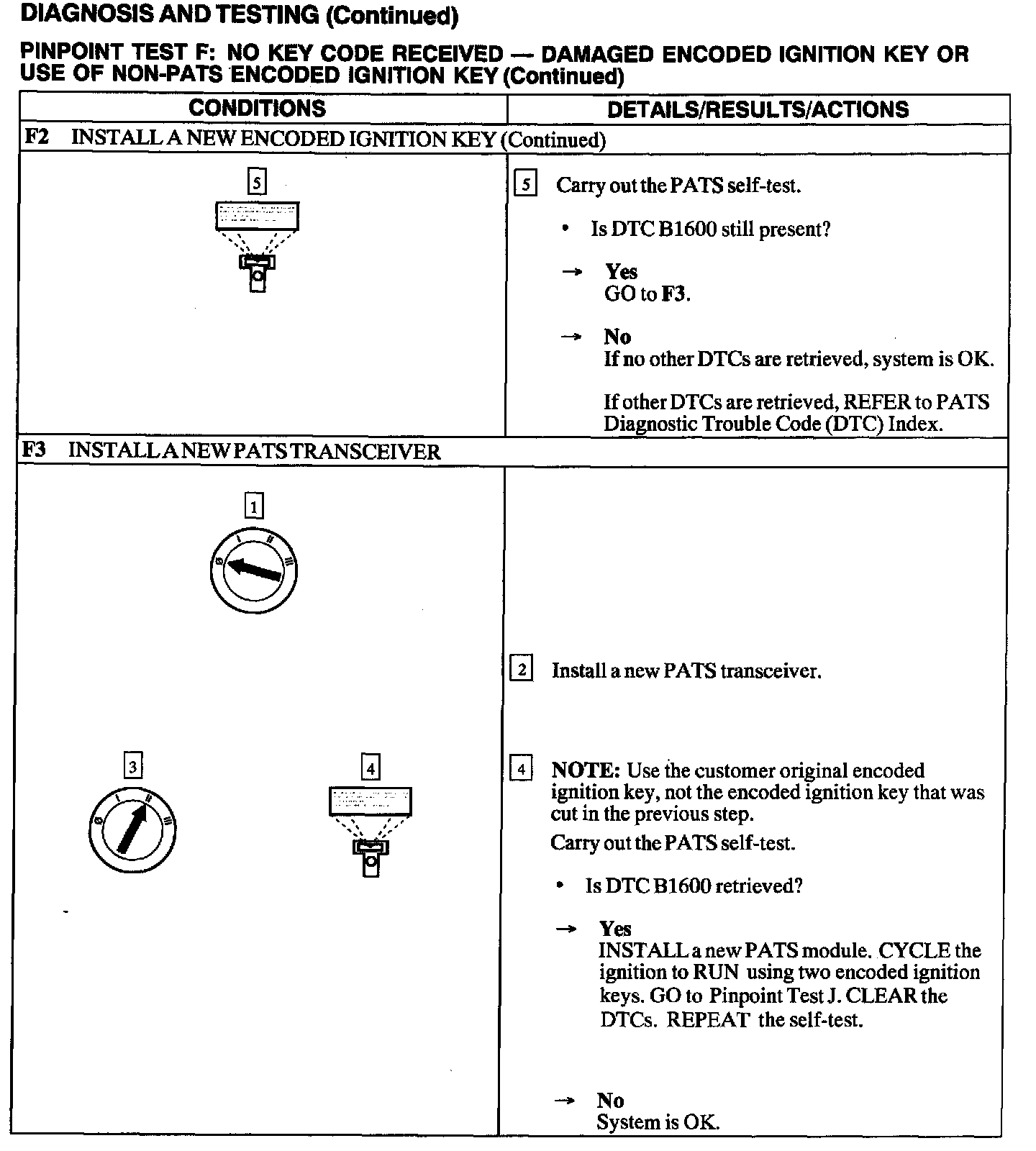 F: No Key Code Received - Damaged Encoded Ignition Key or Use of Non-PATS Encoded Ignition Key