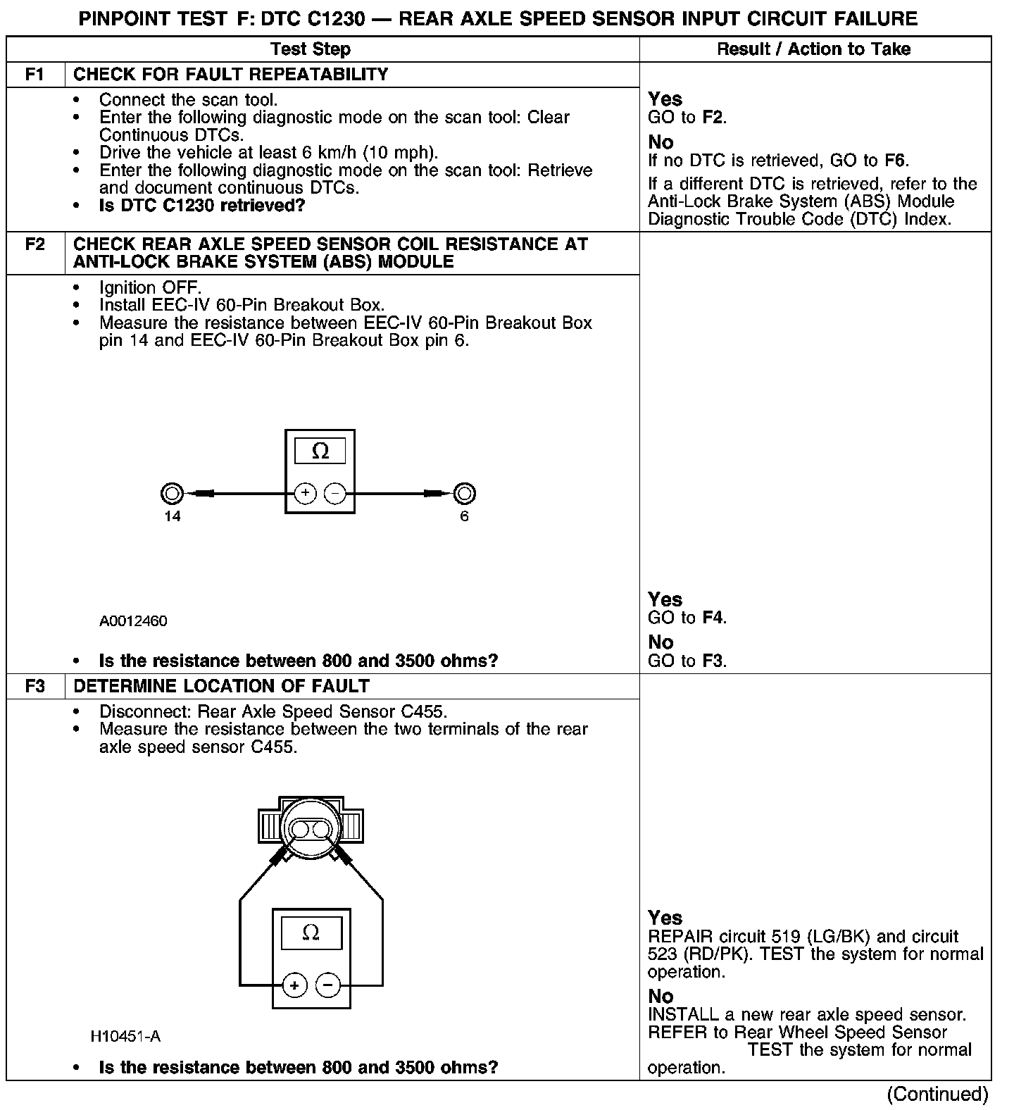 PINPOINT TEST F: DTC C1230-REAR ANTI-LOCK
