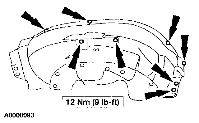^ Remove the RH fender apron to inner fender bolts.