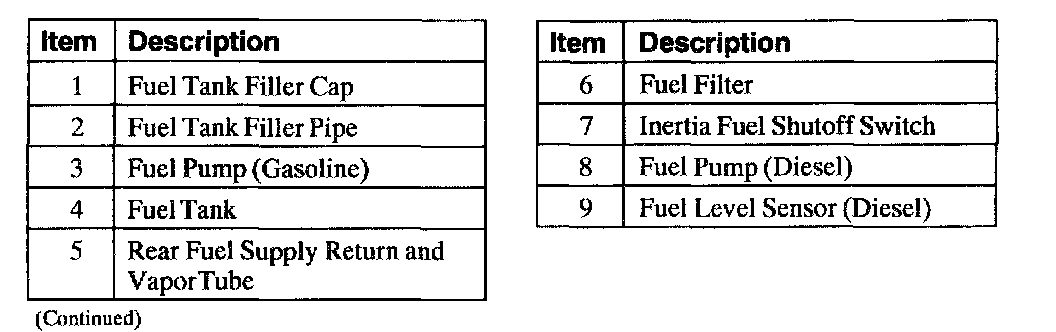 Fuel System Component Location - Midship Fuel Tank, Part 1: