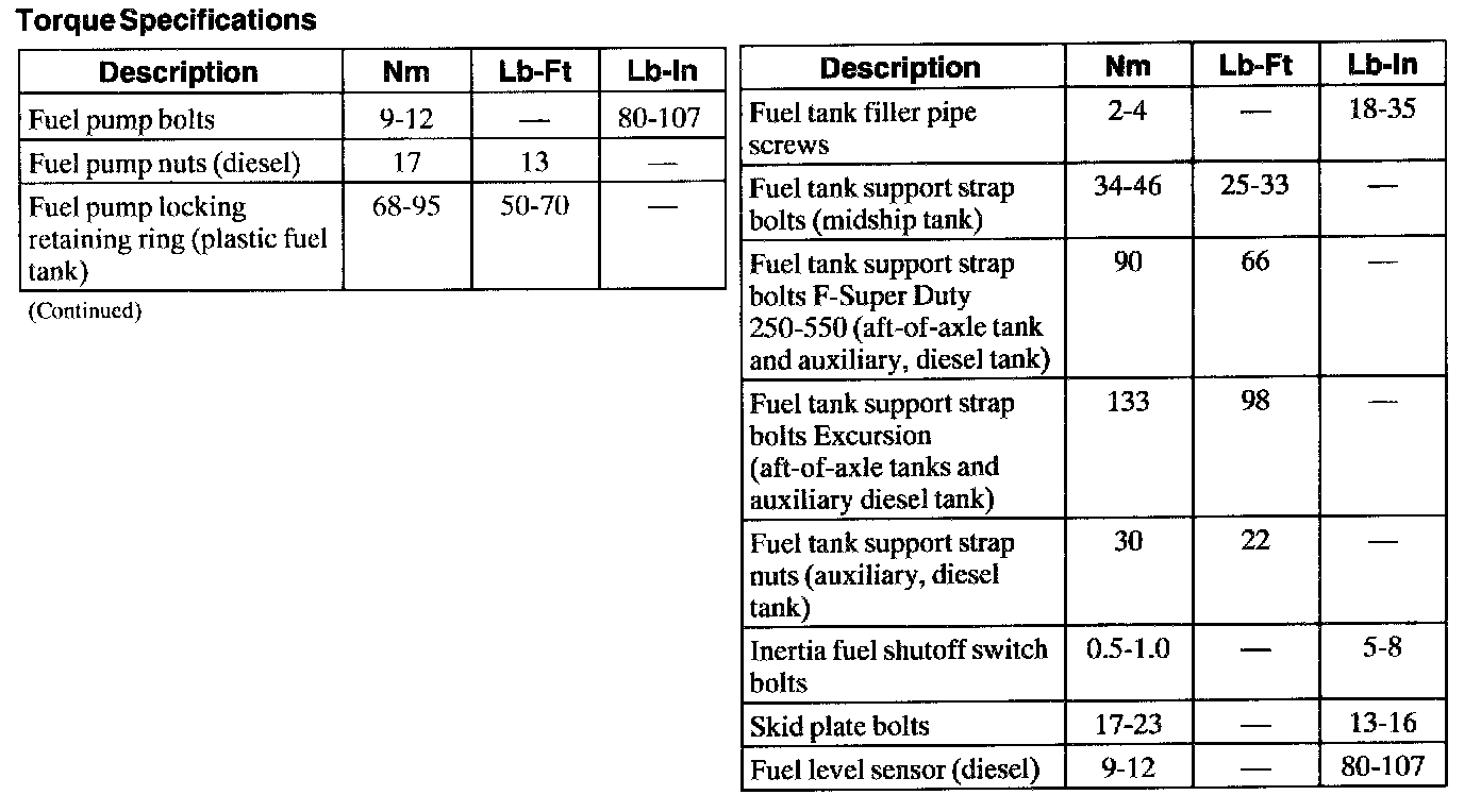 Torque Specifications: